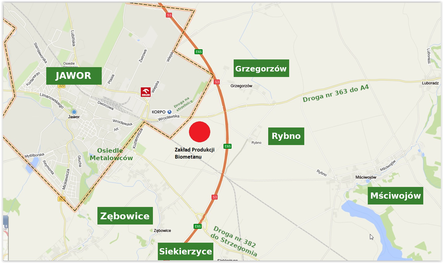 W imieniu mieszkańców wsi Grzegorzów, Rybno, Mściwojów oraz miasta Jawor protestujemy przeciwko budowie Zakładu Produkcji Biometanu w bezpośrednim sąsiedztwie naszych domów. Inwestycja zlokalizowana będzie na skraju gminy Paszowice (200m od granicy gminy) i w sąsiedztwie (kilkaset metrów) od zabudowań mieszkalnych i przemysłowych gmin Mściwojów i Jawor - pomiędzy granicą Jawora a wiaduktem drogi nr 363 (w kierunku Luboradza) nad S3. Zasięg oddziaływania biogazowni ze względu na przeważający kierunek wiatru w okolicy, rozszerza się na sąsiadujące wsie i zabudowania. Obawiamy się, że transport substratów nie jest wykonywany w warunkach hermetycznych, w związku z tym może wywoływać emisję uciążliwych zapachów do otoczenia. Linia produkcyjna, mimo starań o jej hermetyczność, również może uwalniać uciążliwe zapachy podczas czynności serwisowych, czyszczenia, czy też potencjalnej awarii. Sąsiedztwo zakładu produkcji biogazu (co jest udowodnione w wielu lokalizacjach) wpływa znacznie na obniżenie cen nieruchomości w okolicy. Tym samym mieszkańcy i właściciele nieruchomości we wsiach Grzegorzów, Mściwojów, Rybno, Zębowice oraz mieście Jawor umiejscowionych w pobliżu zakładu stracą na wartości swoich nieruchomości